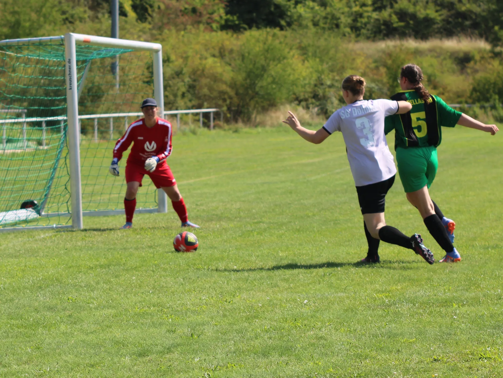 Heute bestritt das Frauenteam des SV Hellas sein erstes offizeilles Testspiel. Dazu machten sie sich auf den Weg nach Döllnitz. Der Leistungsstand der Damen war im Vorfeld schwierig einzuschätzen. Doch was die 35 Zuschauer zusehen bekamen, war für den ersten Vergleich nicht schlecht. In der ersten Halbzeit hatte Oranienbaum mehr vom Spiel und verlagerte das Geschehen in die Hälfte der Gastgeber. Auch das frühe 1:0 brachte die Sieben nicht aus dem Konzept. Sie zeigten Einsatz und Kampfgeist und belohnten sich noch kurz vor der Pause mit dem Ausgleich. Die zweite Hälfte zeigte dann ein umgekehrtes Bild. Jetzt hatte Döllnitz mehr vom Spiel. Ein Doppelschlag in der 57. und 58. Minute brachte den Gastgeber in eine gute Ausgangsposition. Hellas stemmte sich gegen die Niederlage, konnte aber gute Möglichkeiten nicht nutzen. Den Endstand stellten die Gastgeber mit dem Schlusspfiff her, ein perfekter Sonntagsschuss ließ das Netz wackeln. Alles in allem ein gelungener Auftakt, mit dem alle Beteiligten zufrieden sind.